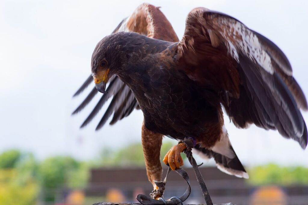 Le Poiane di Harris (L’Intelligenza Tattica): Originarie del continente americano, sono uniche per la loro natura sociale. Vivono in famiglie gerarchiche e questo le rende capaci di collaborare in gruppo (“cast”) e comunicare in volo per massimizzare il risultato.